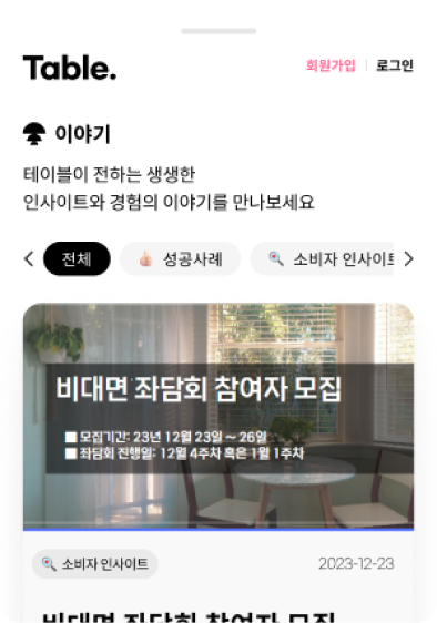 고객 경험 마케팅 서비스 TABLE.